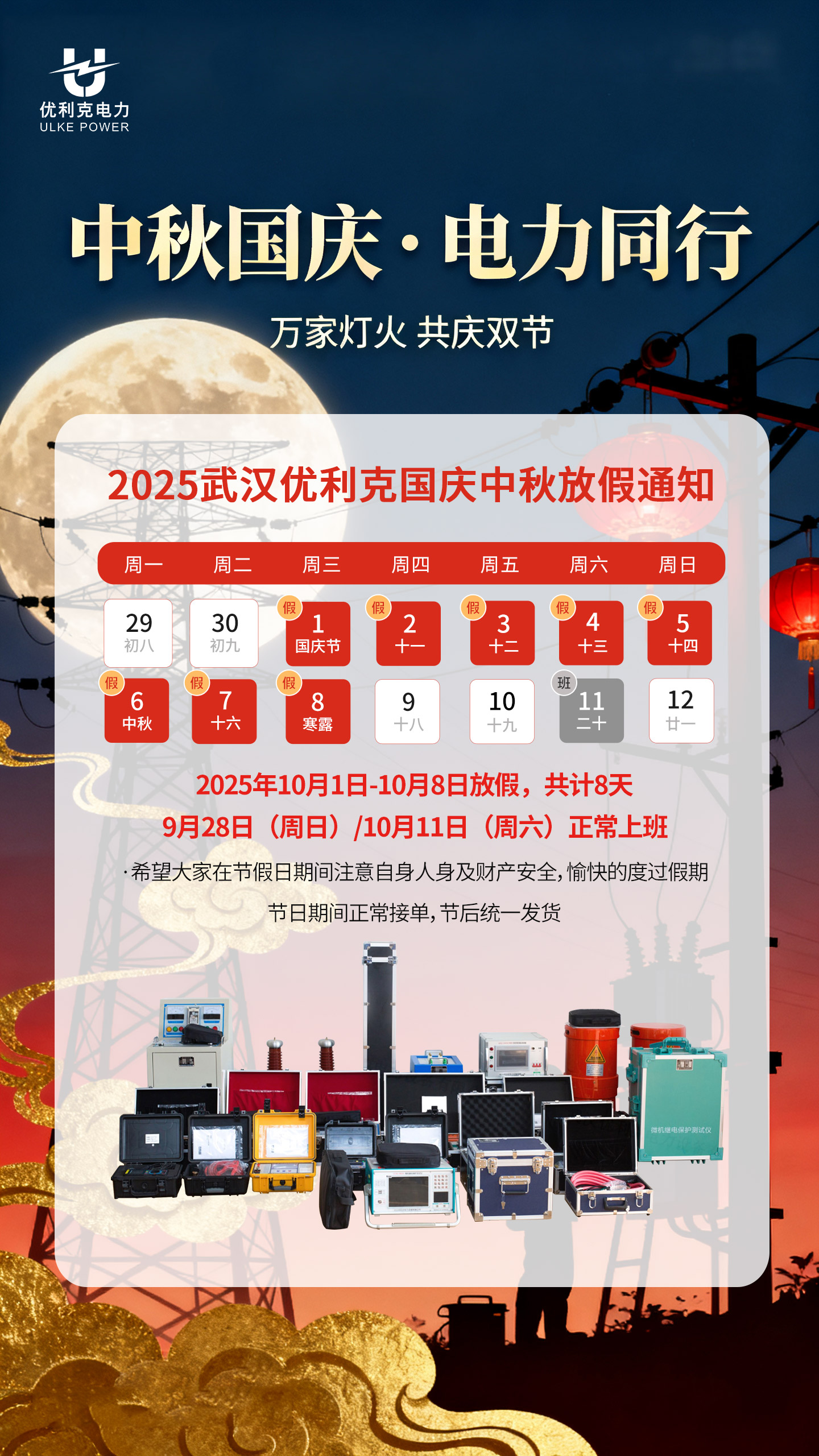 根據國家法定節假日規定及公司實際情況,現將 2025 年十一國慶節(中秋節)放假安排通知如下: