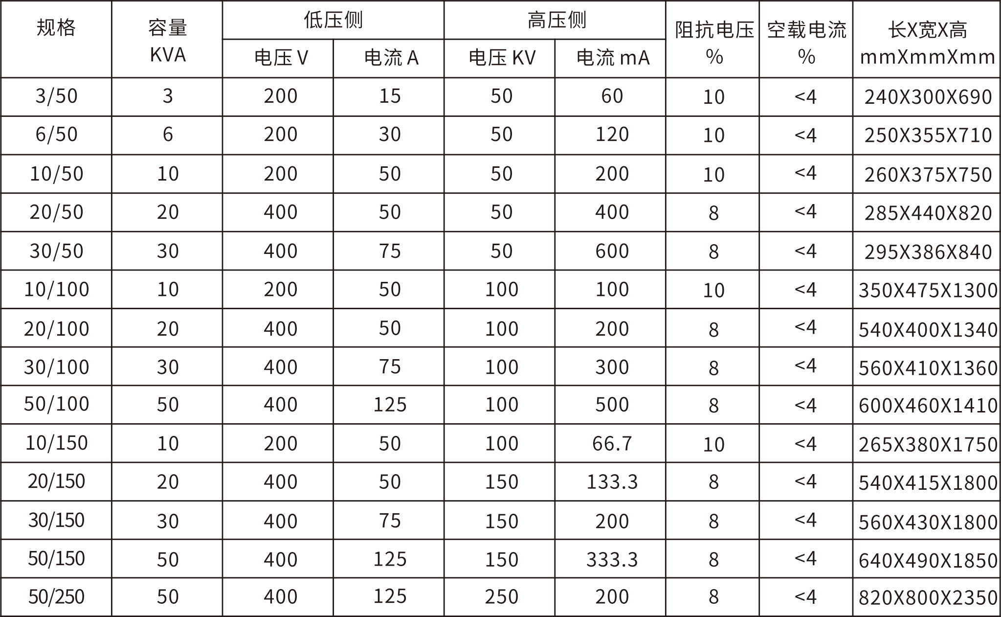 | 容量范圍 | 1~500KVA |