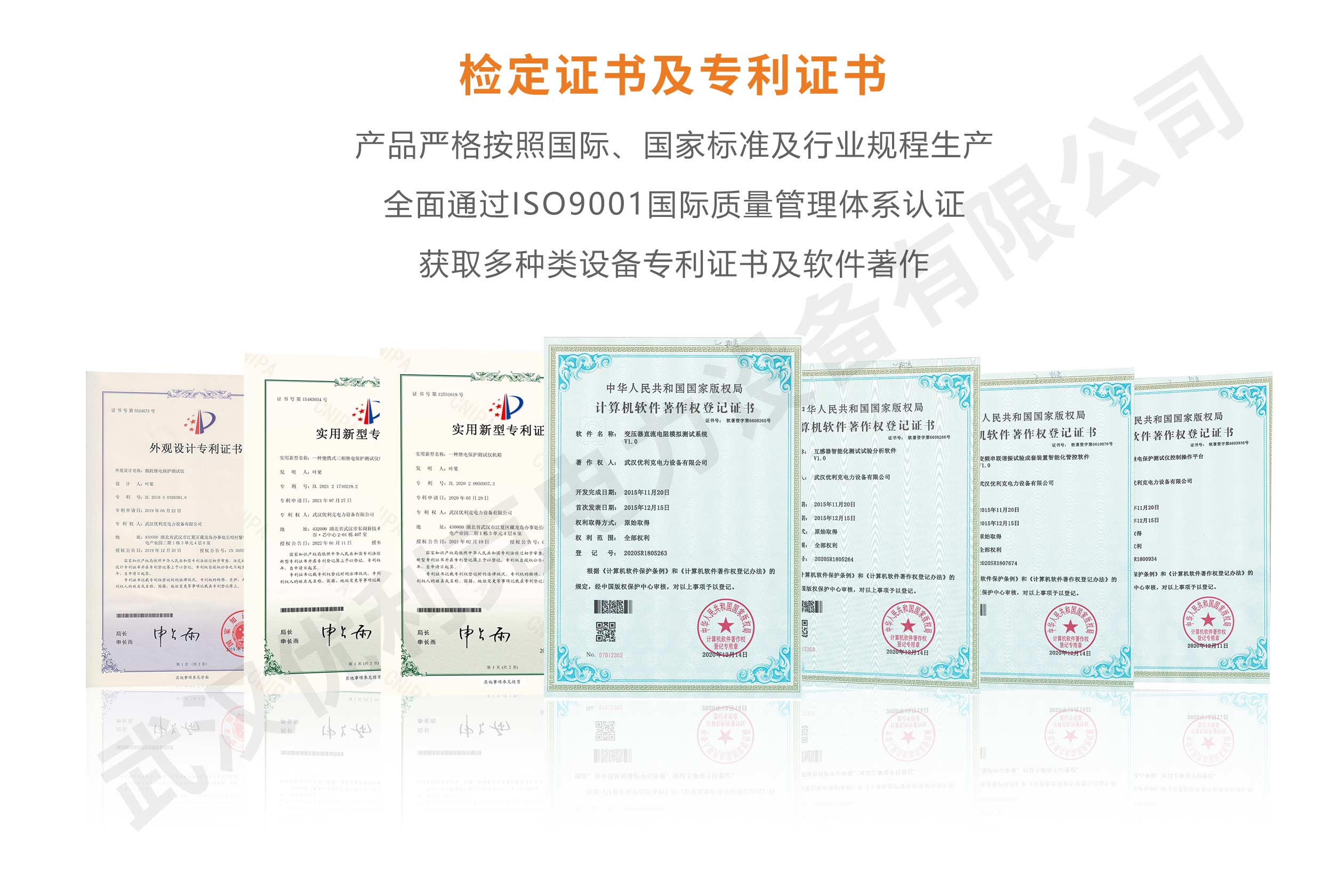 企業產品嚴格按照國際、國家標準及行業規程生產,通過國家、各省級、市級電力研究所、計量中心及電力權威部門的檢測,全面通過ISO9001國際質量管理體系認證、中華人民共和國制造計量器具許可證、GB/T19001-2016質量管理體系要求、GB/T24001-2016環境管理體系要求、GB/T45001-2020職業健康安全管理體系要求。
